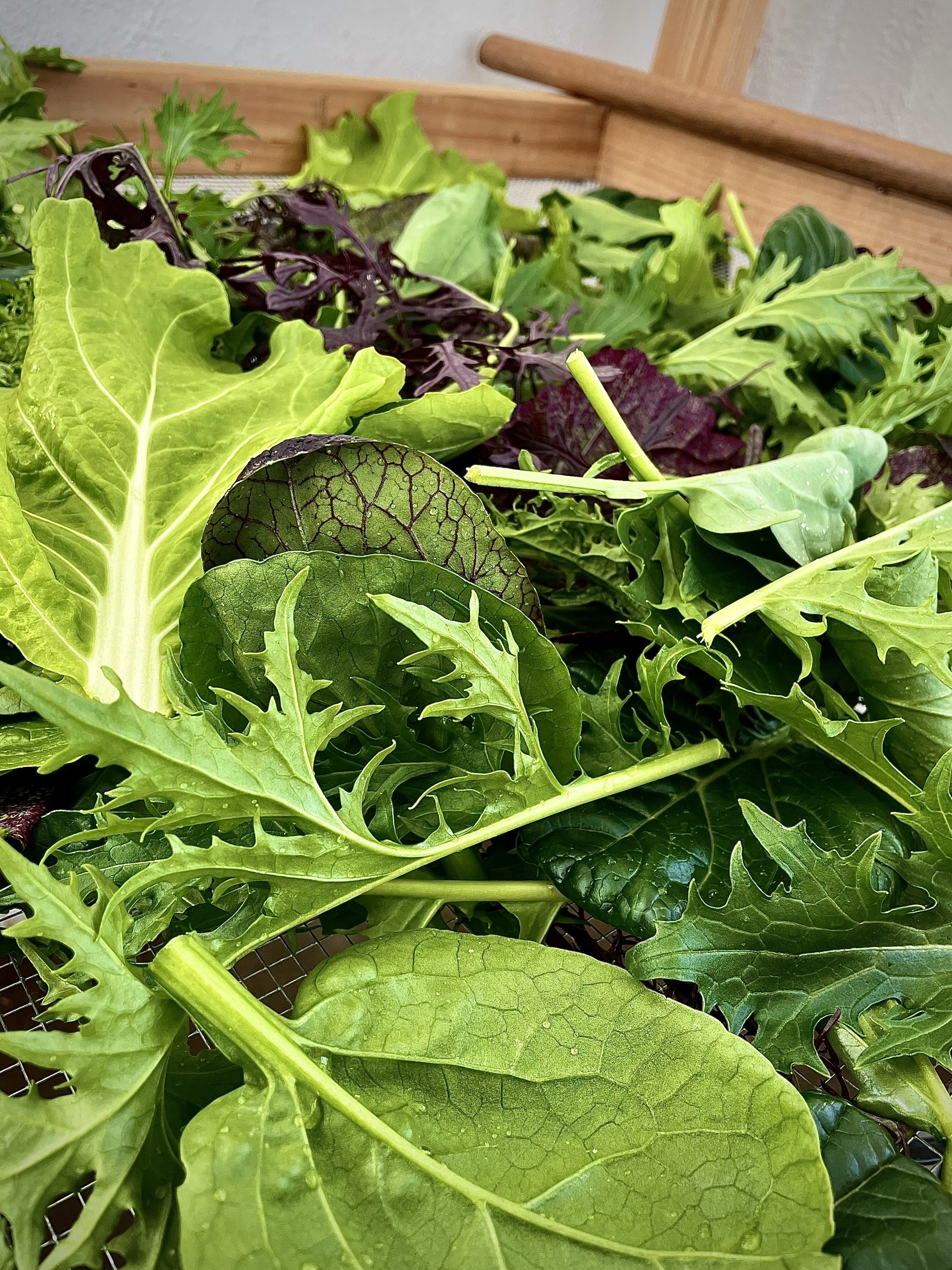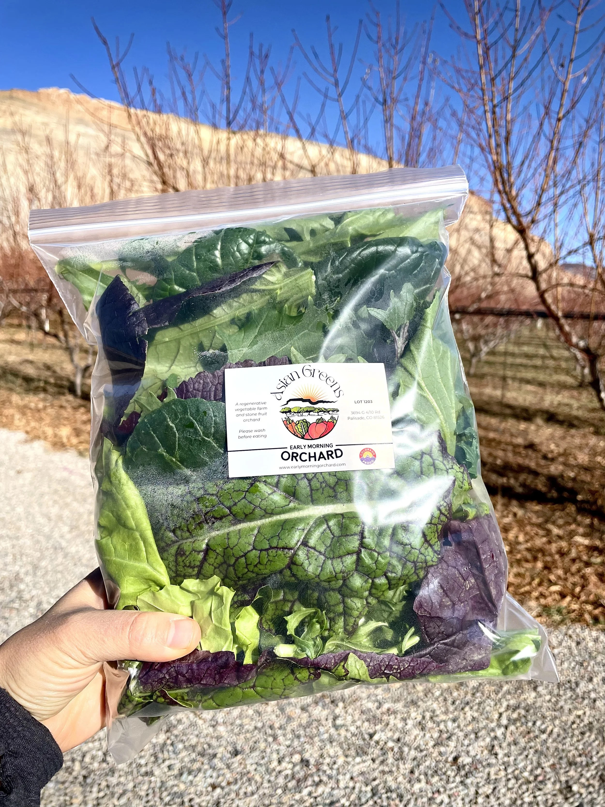 A gorgeous mix of flavors and textures. Large, colorful, and tasty. Includes Mizuna, Tatsoi, Baby leaf brassica greens, and Tokyo Bekana. Great for stir-fries and soups, but also a fantastic addition to salads. Comes in 1/2# bag, stores well for up to two weeks.